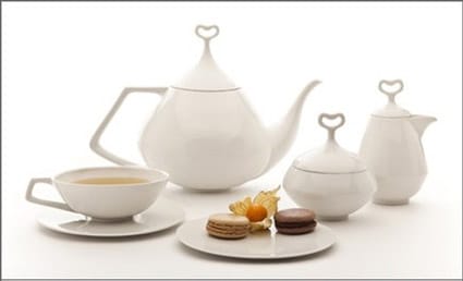Este juego de té incluye tazas, jarra para la leche o crema, azucarera, jarra para el té y por si fuera poco también unos platos para la merienda, ideal para compartir momentos románticos y dulces como lo propone el corazón que sobresale de sus partes superiores. Completamente elaborada en cerámica blanca y brillante este juego es perfecto para servirse en mesas de comedor.