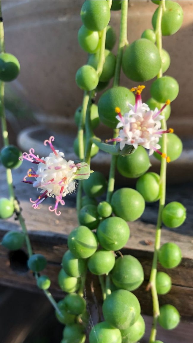 Su presencia es delicada, armoniosa y casi meditativa. Mirarla colgar es como observar un rosario vegetal que crece con paciencia, ritmo y belleza natural.